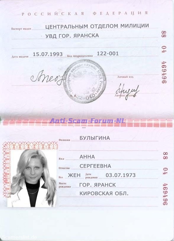 Anna Sergejewna Bulygina 88 04 469496