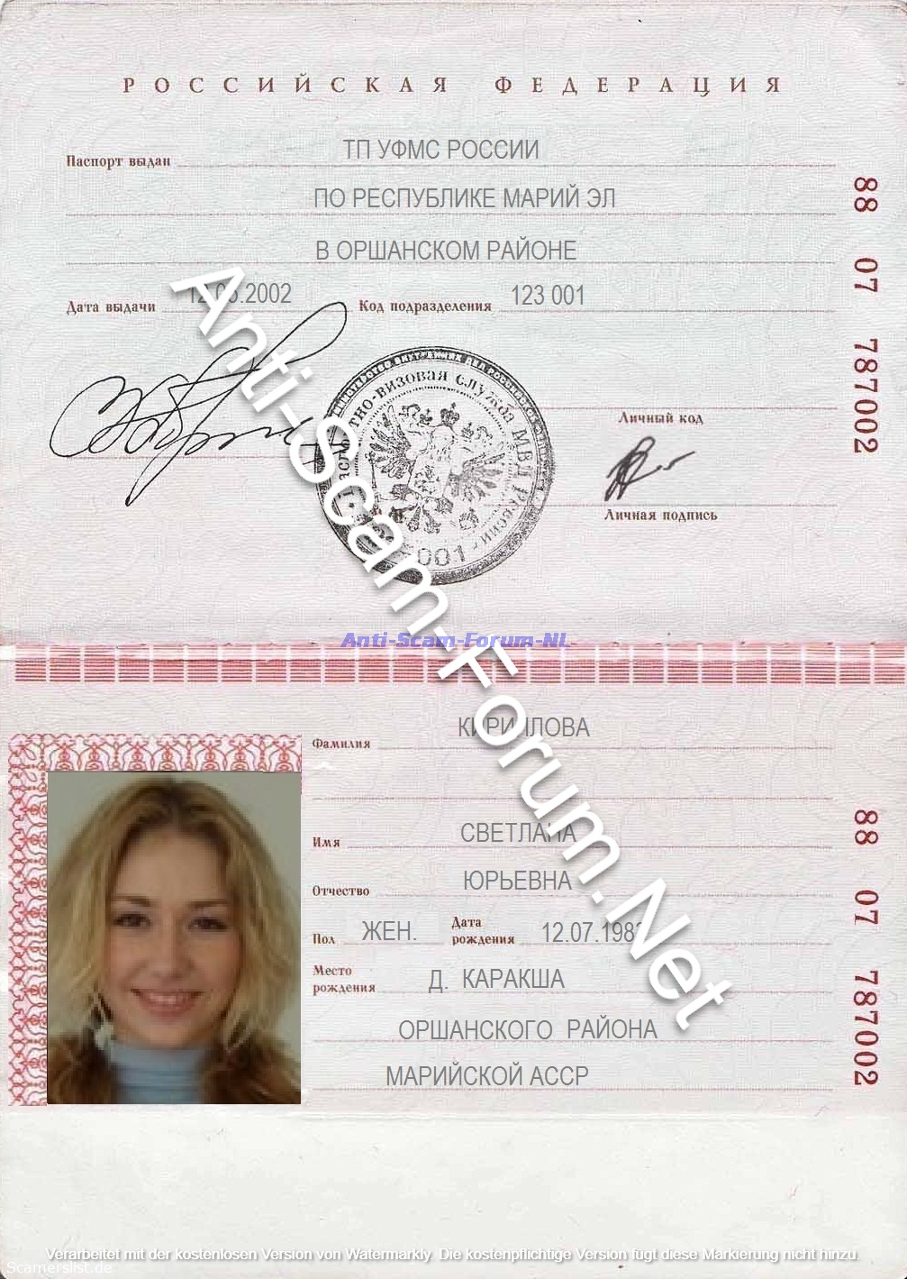 Svetlana Jurjevna Kirillova 88 07 787002