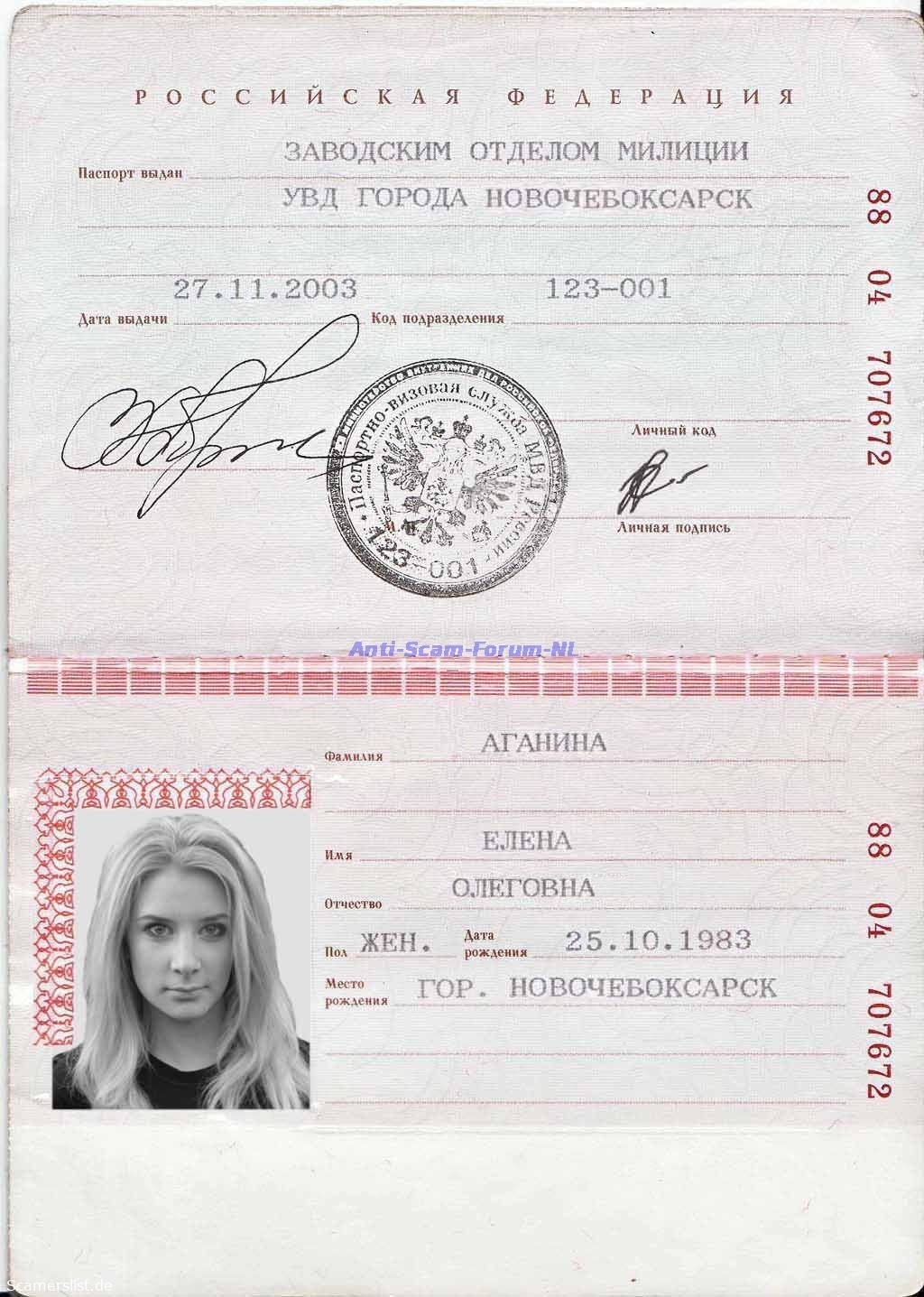 Elena Olegovna Aganina 88 04 707672