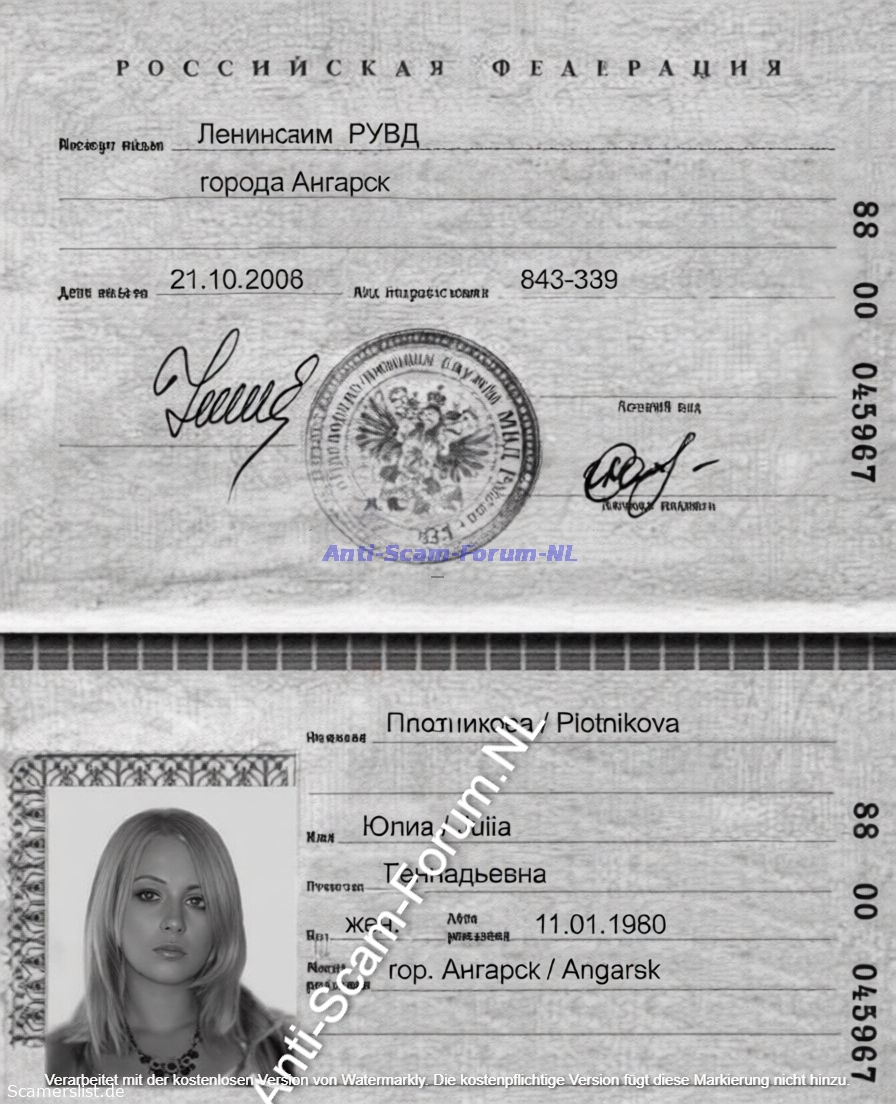 Julia Gennadevna Plotnikova 88 00 045967