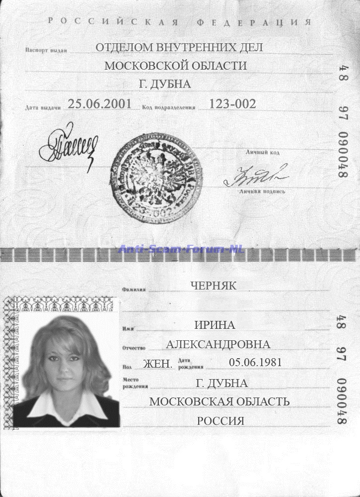 Irina Aleksandrovna Tschernyak 48 97 090048