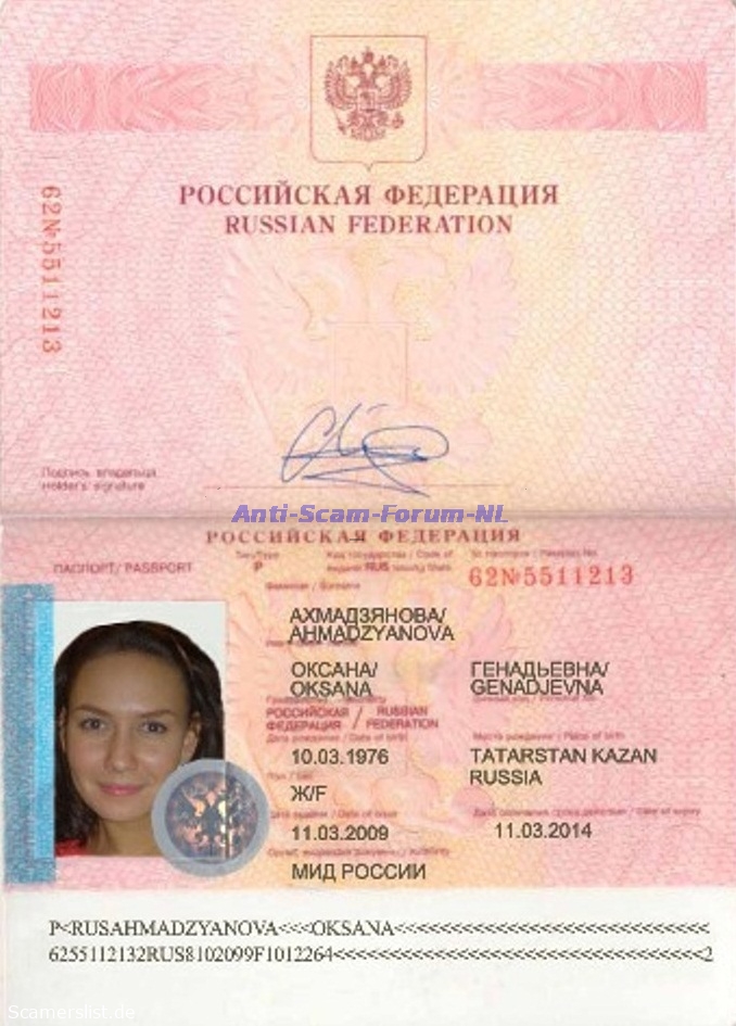 Oksana Genadjevna Ahmadzyanova 62N5511213
