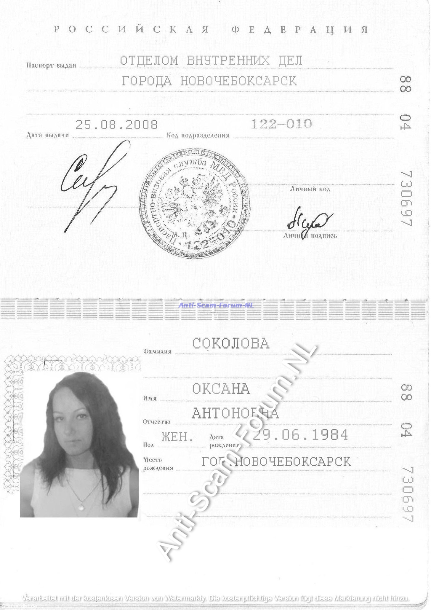 Oksana Antonovna Sokolova 88 04 730697