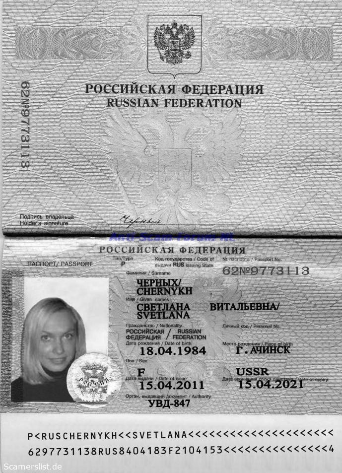 Svetlana Witalievna Chernykh 62N9773113