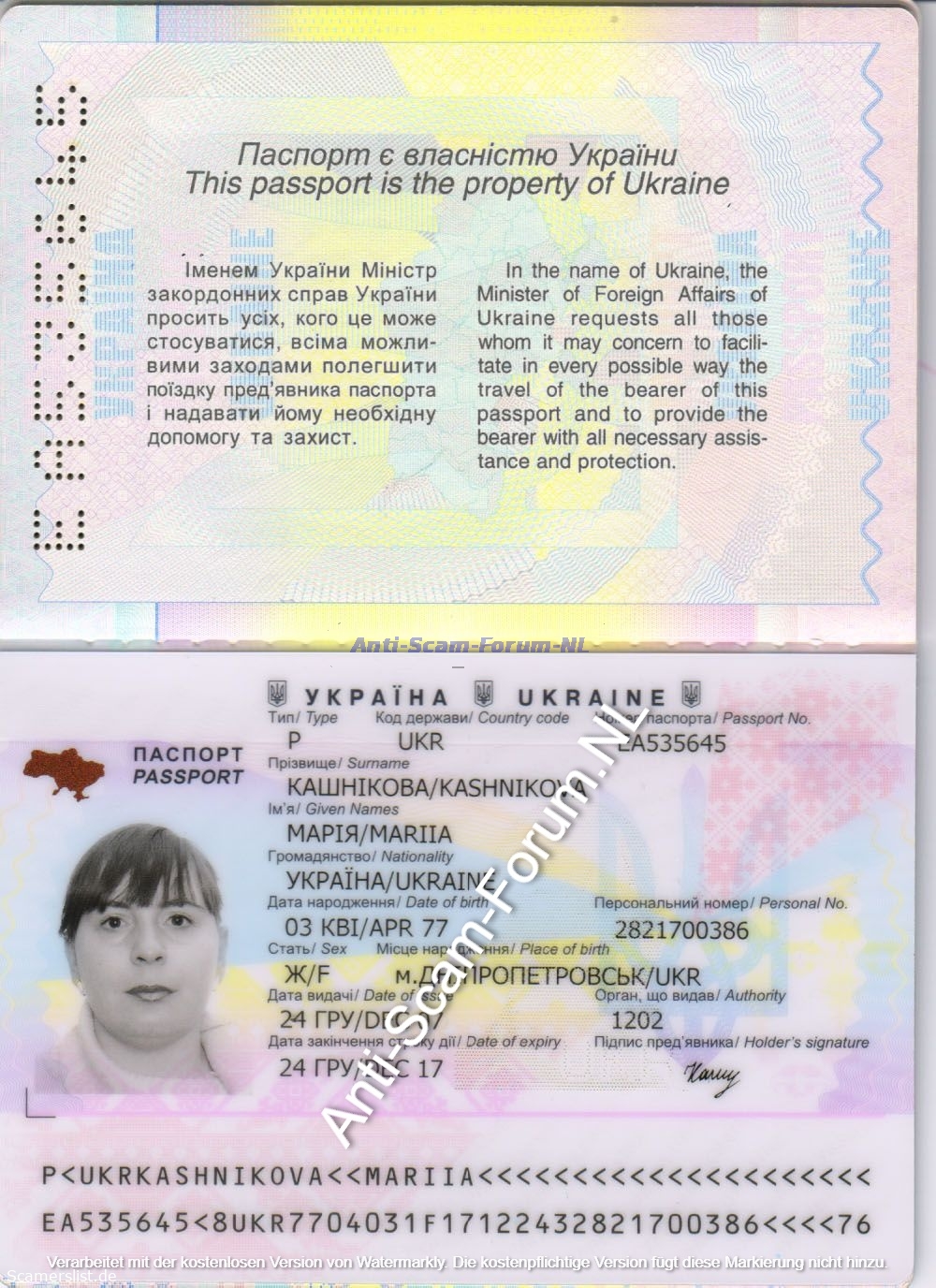 Mariia Oleksandrjevna Kashnikova EA535645